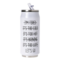 KUBEK TERMICZNY Z DZIÓBKIEM TERMOS BIAŁY CZARNY NAPIS DO AUTA PUSZKA 500ML "I'm Tired"
