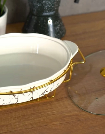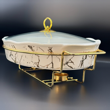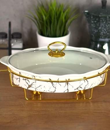Naczynie do serwowania najróżniejszych potraw na co dzień i od święta. Dzięki podgrzewaczom dania pozostaną ciepłe przez długi czas. Charakteryzuje się najwyższej jakości materiałami, dzięki czemu posłuży na długie lata.